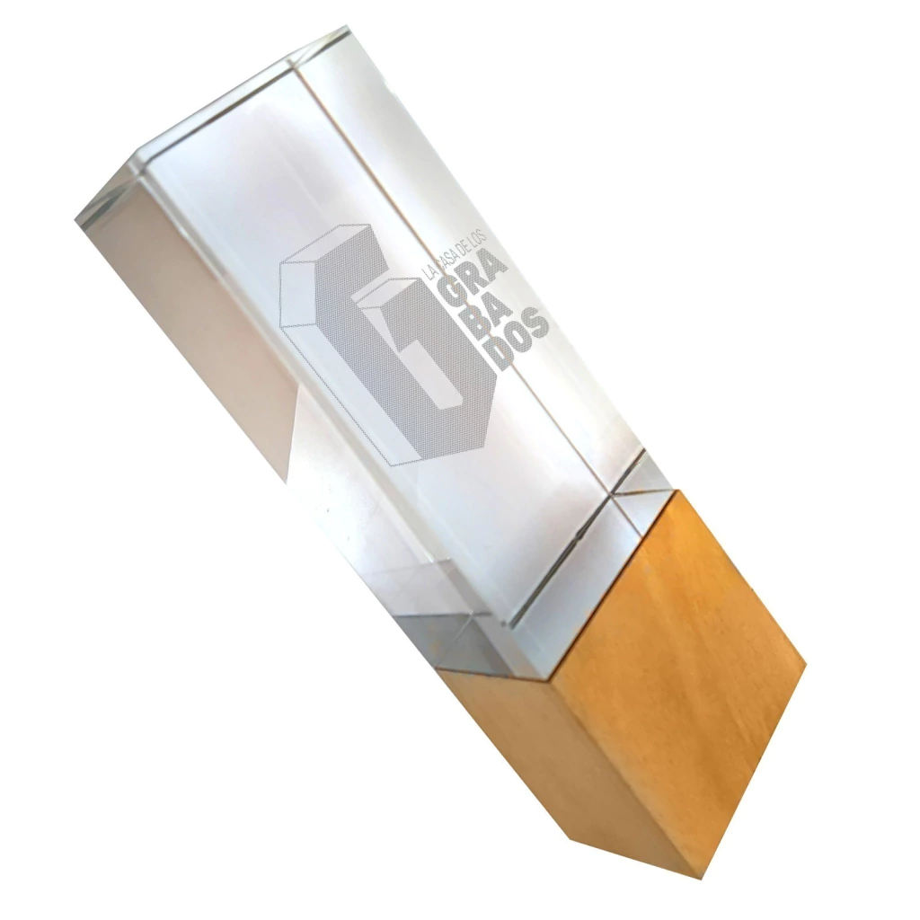 Con unas dimensiones de 22 cm de altura, 6 cm de ancho y 5 cm de largo, se presenta sobre una base cuadrada de madera que aporta estabilidad y distinción. Además, incluye un grabado personalizado y un estuche, lo que la convierte en un regalo memorable y significativo.