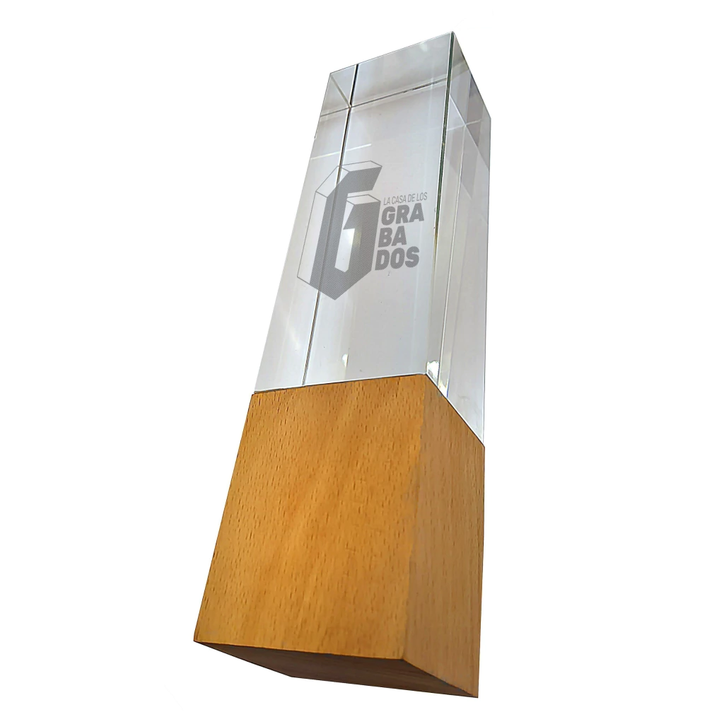 Placa Conmemorativa Vertical de Cristal con Base de Madera